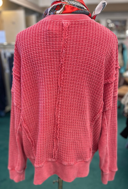 Sold outBoho Red Waffle Knit Long Sleeve Top