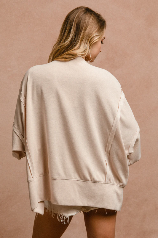 Bibi Oatmeal Leopard Patchwork Letter Oversized Top
