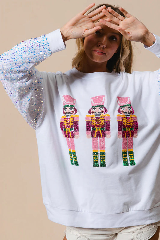 Bibi Pink Christmas Sequin Nutcrackers Embroidery Sweatshirt