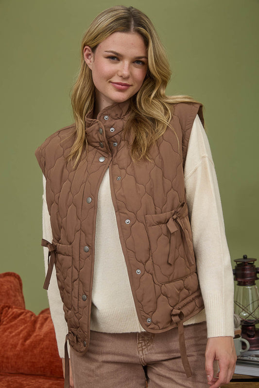 Blu Pepper Plus Tie Detail Snap Button Down Quilted Puffer Vest