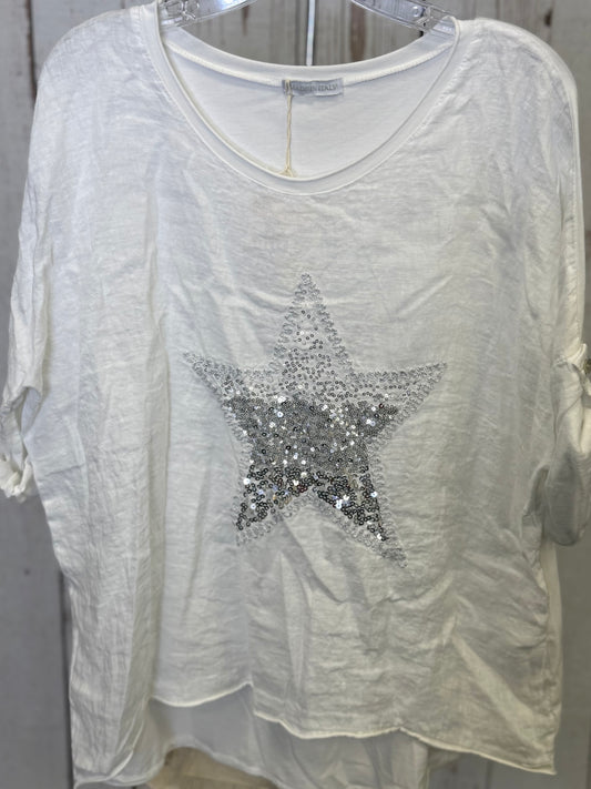 Made in Italy Linen Button Front Top with Decorative Front Pockets