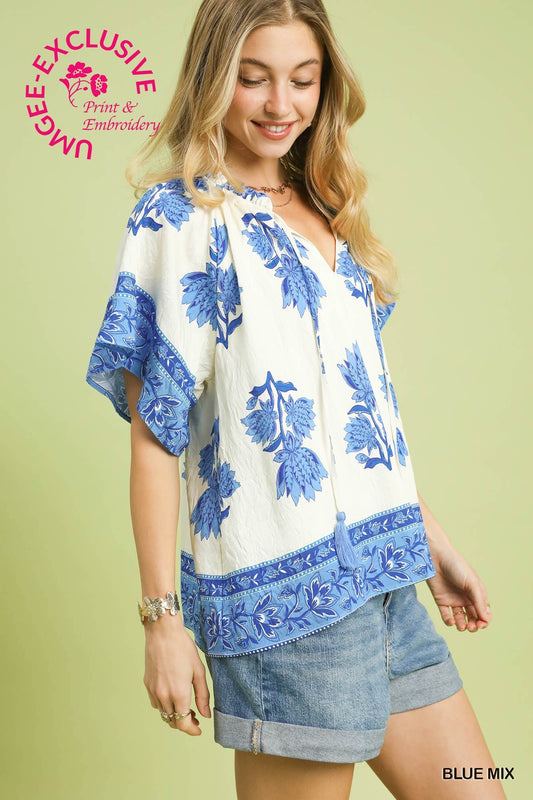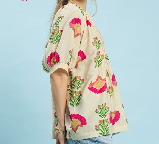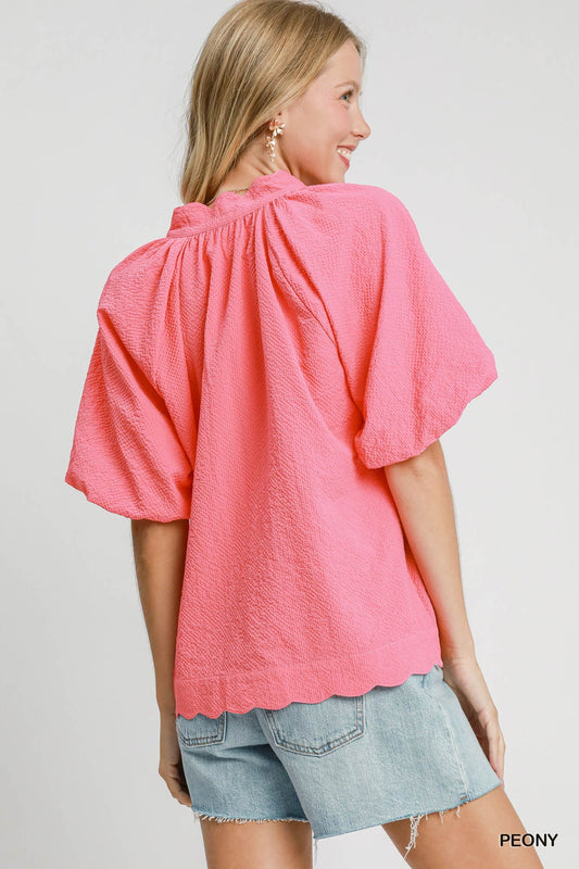 Umgee Peony Bubbled Sleeved Seersucker Top