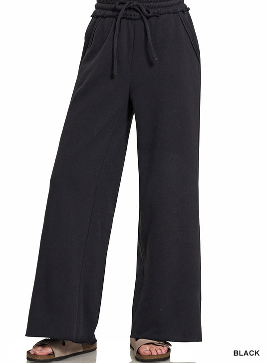 Zenana FLEECE EXPOSED SEAM WIDE LEG SWEATPANTS