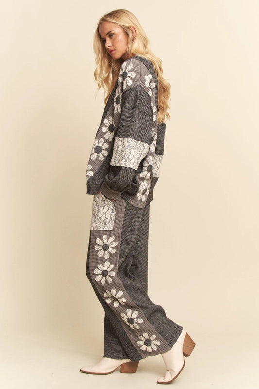 J. Her Ash Black Mineral Washed Leopard Asymmetrical Tier Pants