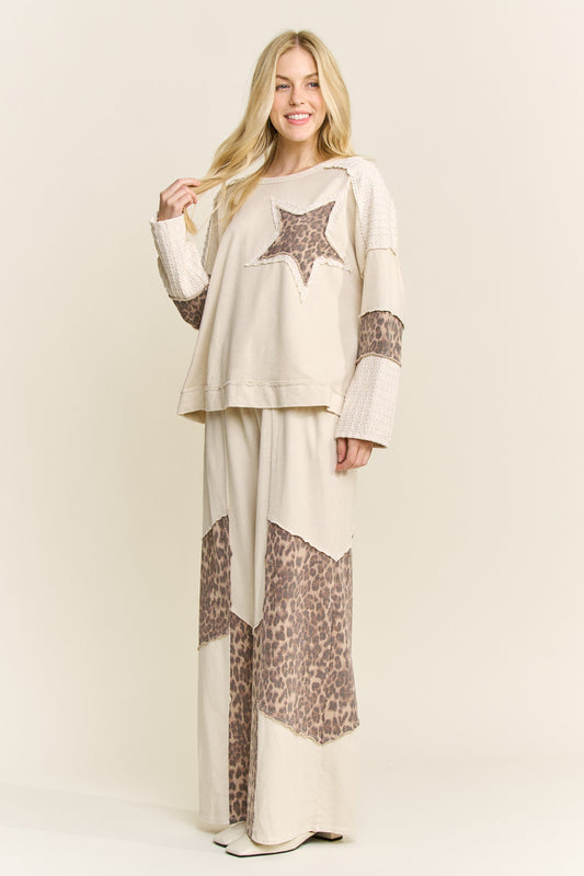 J. Her Natural Mineral Washed Leopard Cheetah Star Patched Top