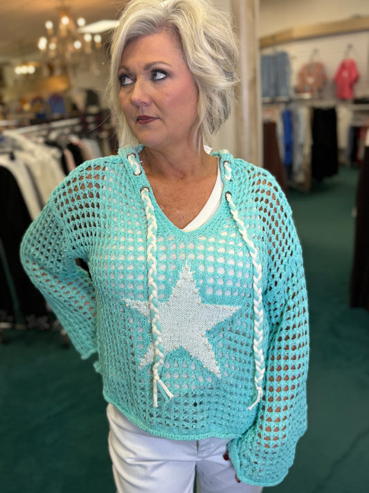 POL V-Neck Star Patch Pearl Stud Hoodie