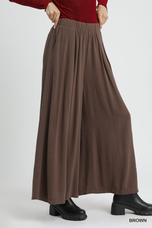 Umgee Brown Linen High Waisted Wide Leg Palazzo Pants