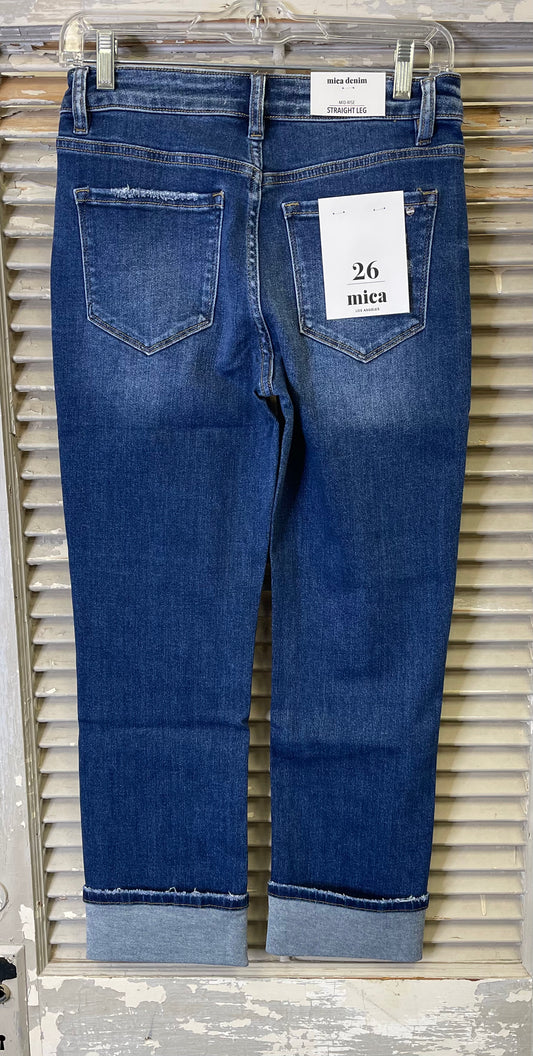 Easel Midnight Blue Crochet Patch Detailing Washed Thermal Pants