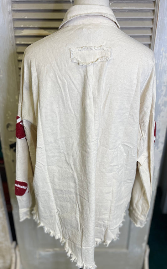 Easel Natural Daisy Patch Washed Terry Hoodie Pullover