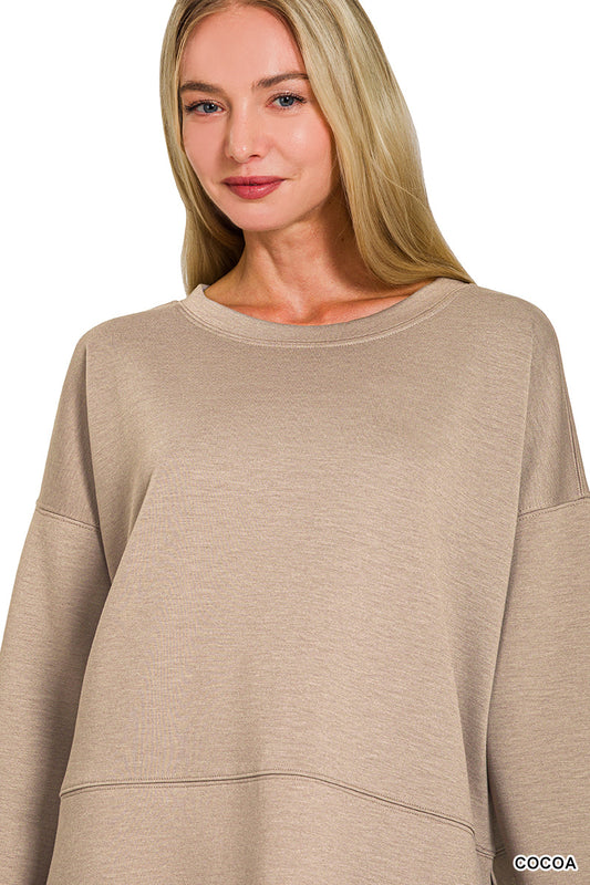 Zenana FLEECE HI-LOW BOYFRIEND SWEATSHIRTS WITH POCKET