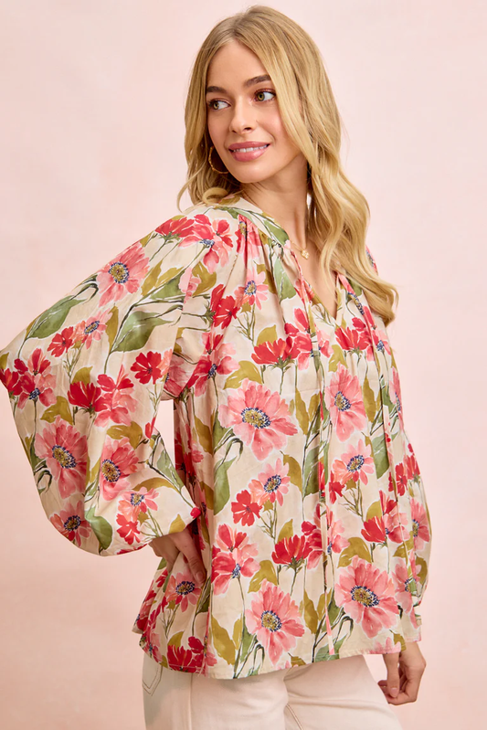BIBI Floral Print Exaggerated Balloon Sleeve Top