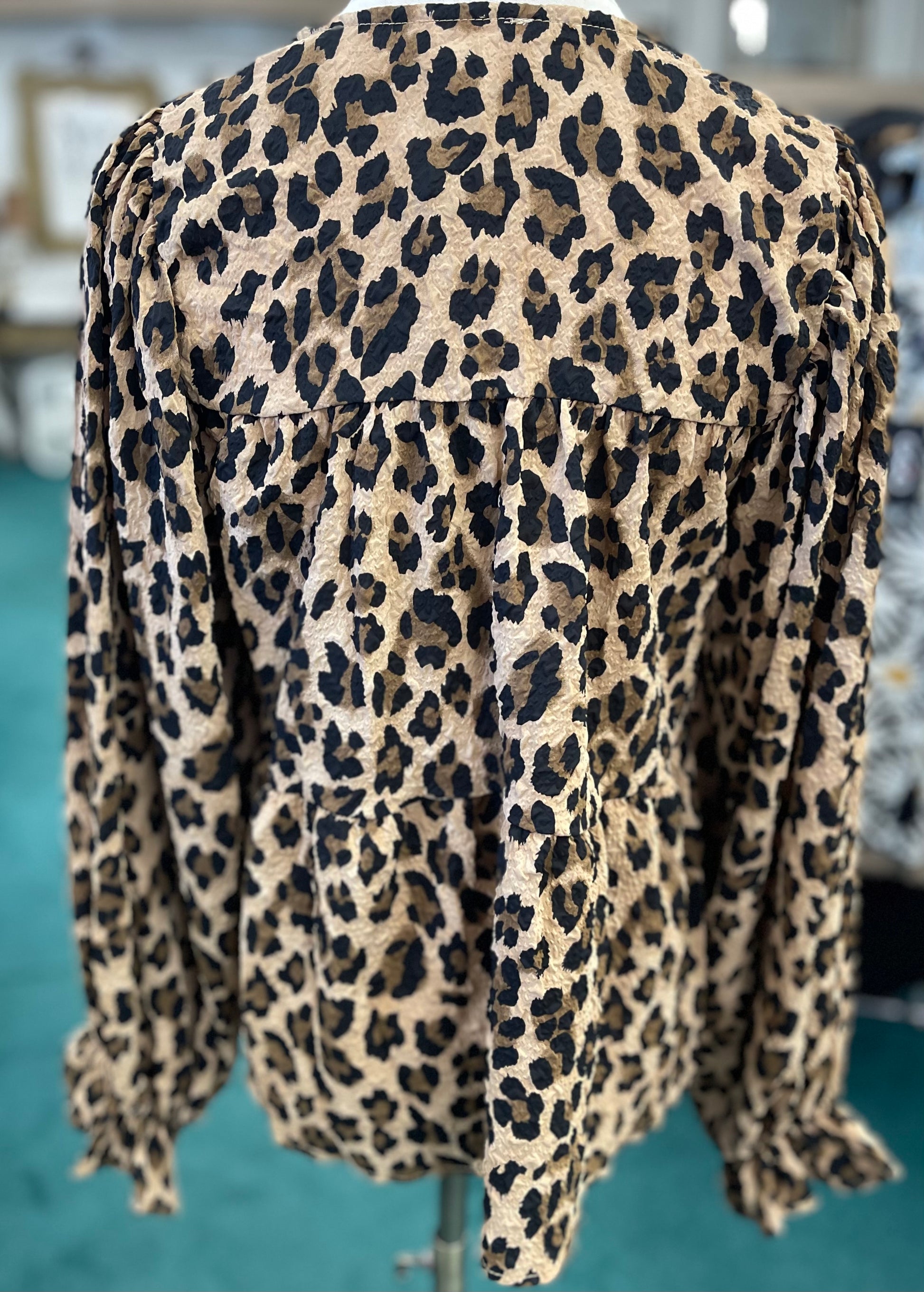 LEOPARD PRINTED BOW TIED TOP WITH V NECK DROP AND LONG SLEEVES