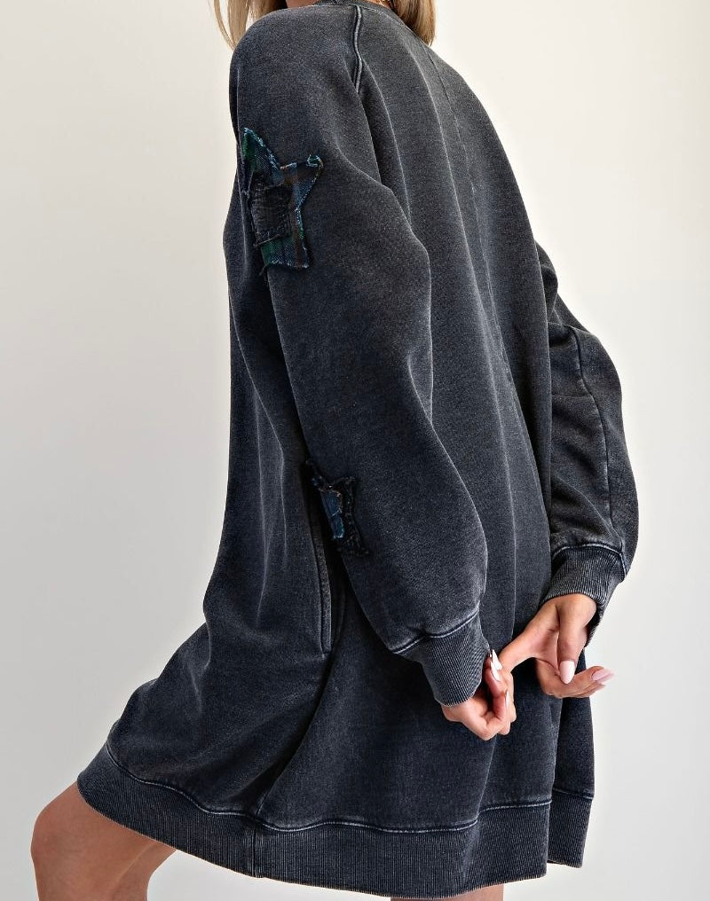 Easel Plus Size Star Patch Mineral Washed Terry Dress