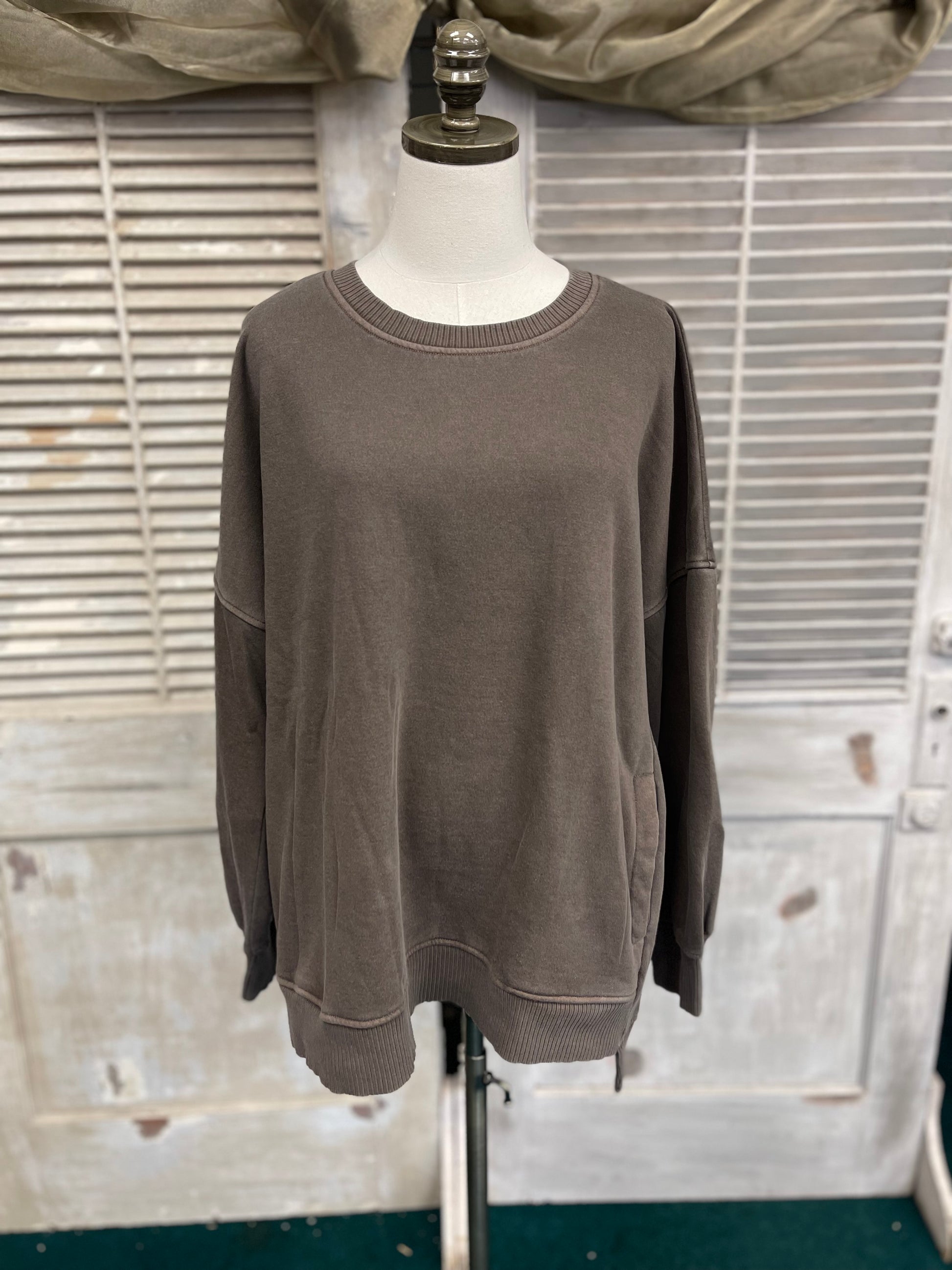 PLUS PIGMENT DYE FLEECE HI-LOW HEM PULLOVER WITH POCKET