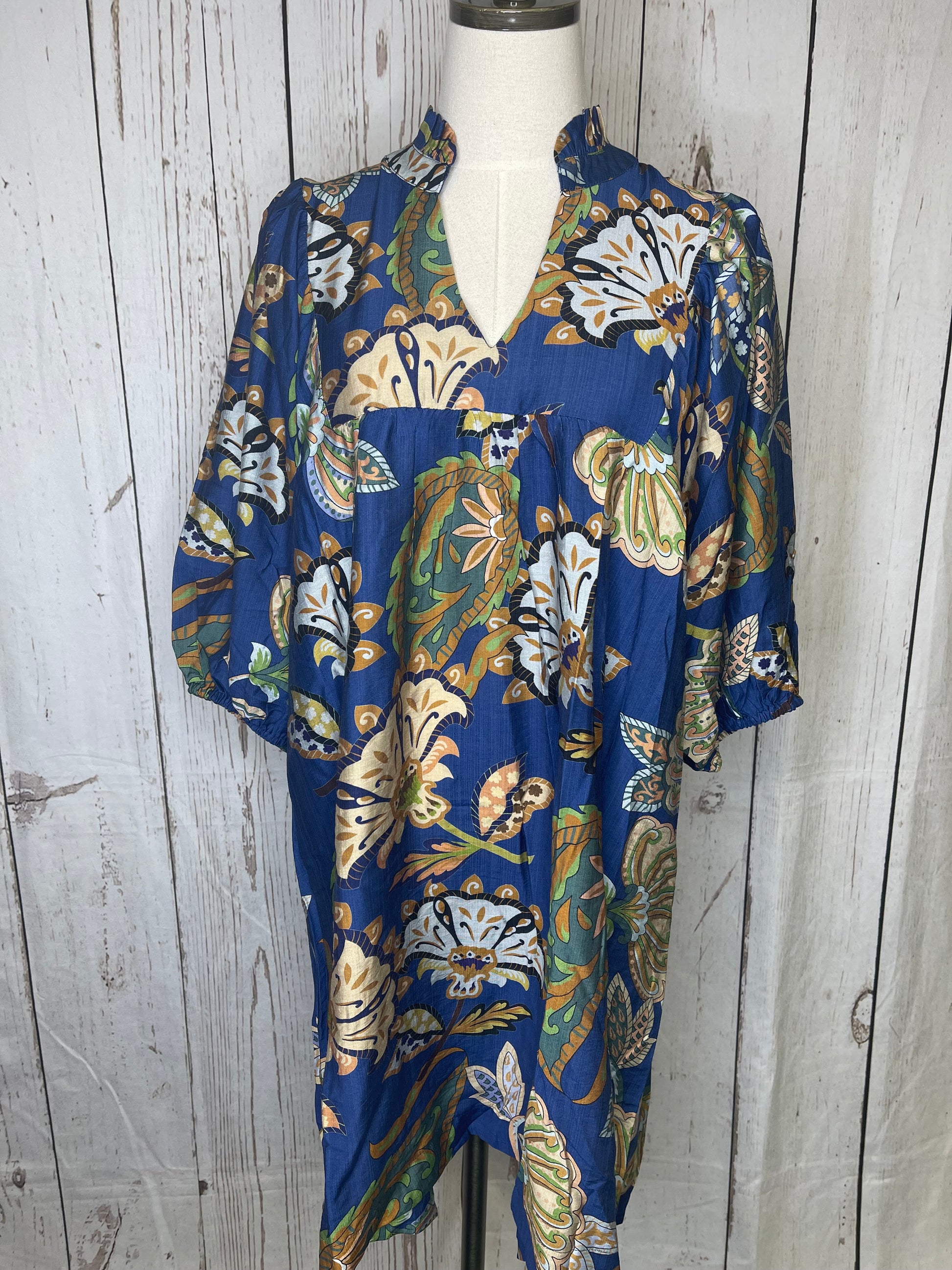 Umgee Plus Size Midnight Blooms Puff Sleeve Babydoll Dress